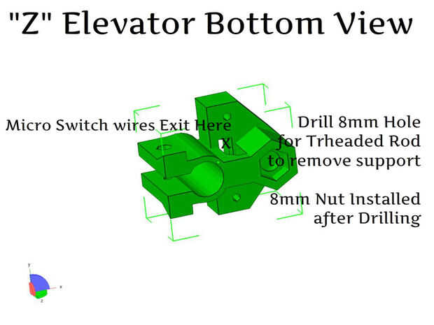 Montar el elevador de Z, la tuerca y resorte en la varilla roscada.