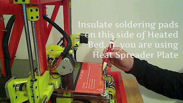 Sujetar las camas calienta a la superficie de construcción, aislar las almohadillas de soldaduras si se utiliza placa de esparcidor de calor.