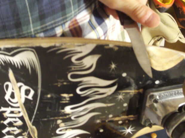 6.) su cuchillo y corte alrededor del borde del tablero.