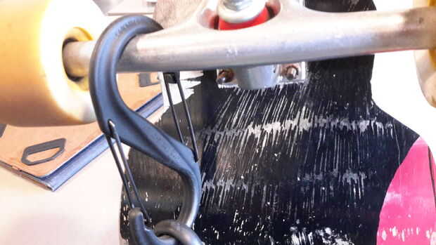 Ahora sólo toma menos de 10 segundos para fijar la correa a su Junta. Mientras que usted está montando alrededor Coloque la correa en un bucle de cinturón o mochila. Espero que esto hace que tu vida sólo que mucho más fácil!