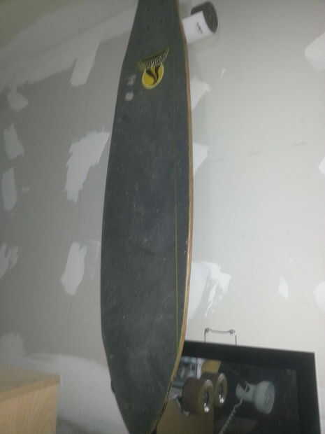 Necesitaba una manera de colgar mi tablero largo cuando no estoy usando o no en mi coche. Encontré con tubo de PVC funciona muy bien para el montaje de la tabla larga. Usé 3 pulgadas pvc que corte por la mitad y utiliza los dos la mitad de los camiones de la tabla larga para colgar.