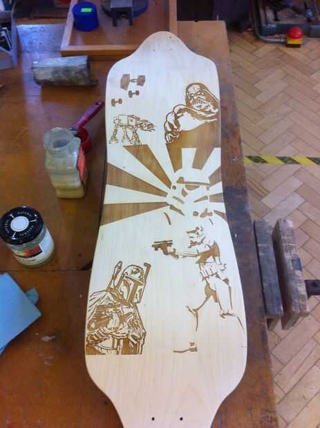 Pasó unas horas google Star Wars gráficos de arrastre y diseñado mi composición en Photoshop, guarda como un archivo JPEG y establecer mi cortador del laser para trabajar.