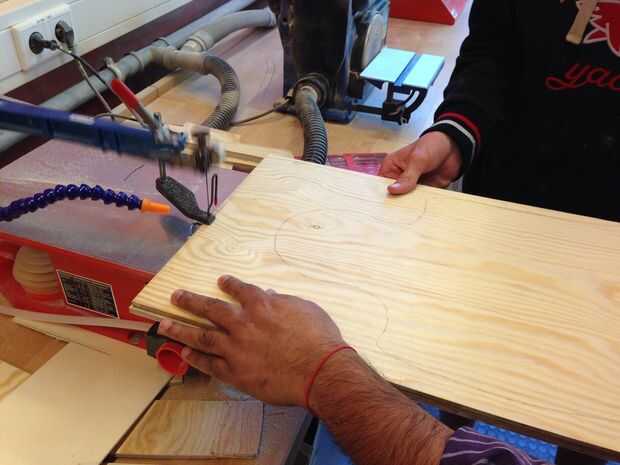 Tal vez pregunte a alguien para ayudarle a mantener la madera, ya que es muy dificil de cortar su propio. Comenzar con la cola superior, ya que tendrá la mayor cantidad de tiempo. Siempre tratar y cortar en trozos pequeños, ya que sería muy difícil hacer todo a la vez. Inicio de con dos colas y luego su auto abajo a los lados tratando de cortar como precisamente en la línea. No importa si usted procede lentamente, pero mejor el corte más fácil conseguirá más adelante.