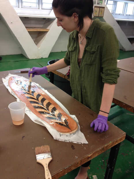 La tela de fibra de vidrio se convertirá en transparente después de que la resina está en él. Dependiendo de cuánta resina que utilizas podría ser como cristal (resina completamente cubiertas de tela de fibra de vidrio), o podría tener cierta textura de tejido a ella (la textura de la tela de fibra de vidrio). Usted puede hacer tantas capas que siente la necesidad. Hice una a cada lado.