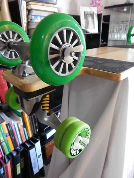 Mi primera idea fue utilizar tuercas de nylon para cambiar mis ruedas según sea necesario, viajar a la ciudad en los transportadores, luego cambiar a las bóvedas cuando las cosas fueron smoooooth - esto mantendría la Junta solo echado a un lado, pero es típico que cuando estoy explorando la ciudad hay siempre alguna gota grande o tapa negra grumosa tratando de deshacerse de ya o arrastrar hacia abajo ya la velocidad carros tan dobles fue: el camino es áspero , solo se voltea le, no te preocupes.