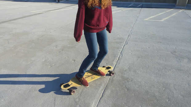 b. desplazar peso hacia los dedos del pie (ver foto) para girar a la derecha, o hacia los talones para girar a la izquierda