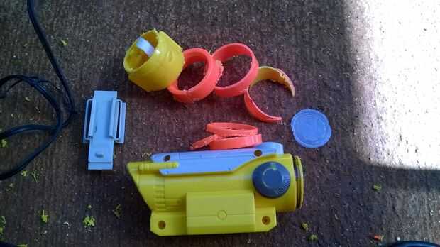 Foto 2: ocular (naranja) está de pie junto a la fijación de la pieza de ojo (amarillo / blck línea), que corté e izquierda a menos de 1/4" a meter el ojo naranja pieza en archivo adjunto.