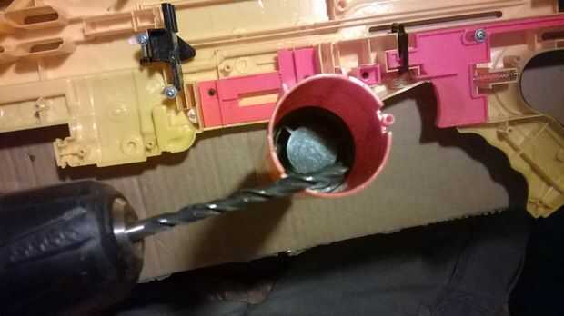 Next que utiliza el destornillador para perforar por la mitad un par de veces. Se quedó atascado un par de veces, pero como se pueden ver el partículas negras y la primavera son el restrictor de aire y el hoyo en uno es limpio y fácil del flujo.