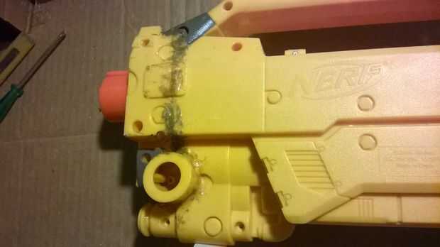 Yo no asoman a través de, acaba de añadir más plástico derretido. Puede Agregar cuñas y pegamento o funden en el interior.