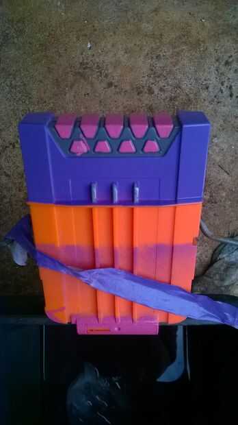 PIC 1: grabado todo lo que queria púrpura y gris; Añadí cinta de tira de pin que corte, había cubierta de la cámara de bala y el compartimiento del cartucho y el hocico dentro.