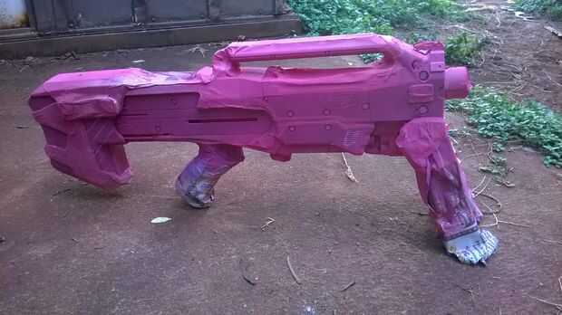 Foto 2: rociaron rosa sobre una cartulina y cepillado en los dientes buscando piezas. Después de todo es un arma de chicas girly.