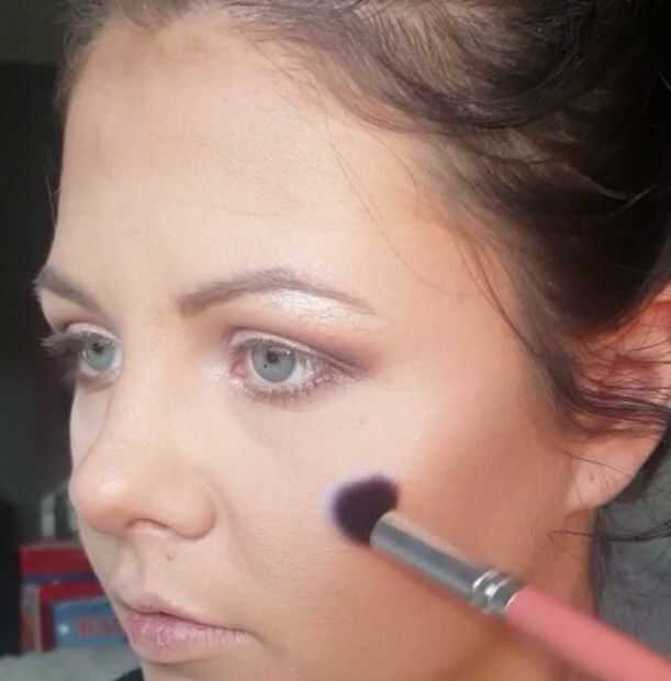 Luego con un color blanco reluciente aplicar esto al hueso de la ceja. Yo entonces también utilizó esto como un marcador. Para aplicar esto a la punta de mi nariz y los puntos más altos de mis mejillas.