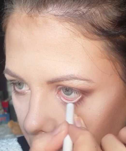 Luego se aplica un lápiz blanco para la línea de flotación de mi ojos para ayudar a mantenerlos buscando grandes y abiertos. Para terminar los ojos aplico mi mascara y algunas pestañas muy suaves para ayudar a todos que el centrarse en los ojos.