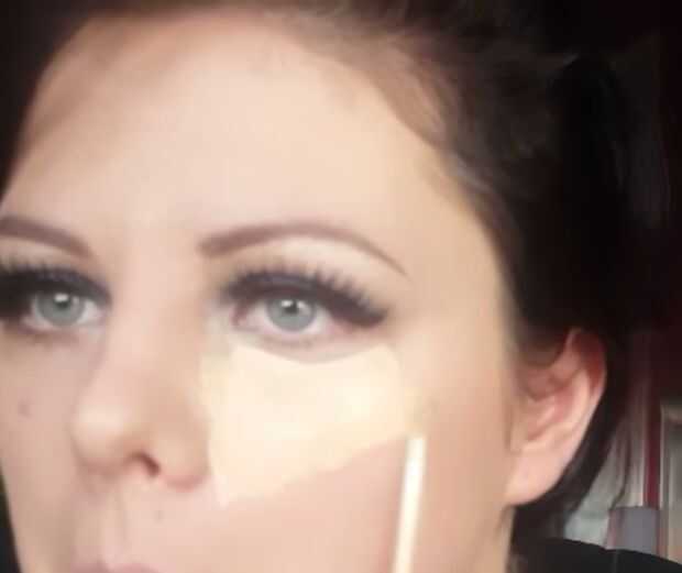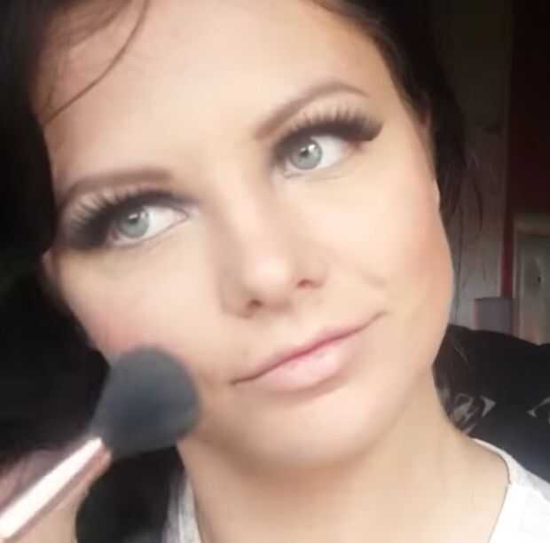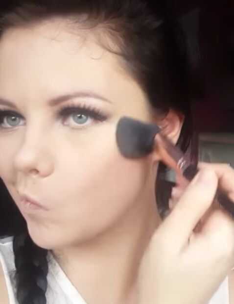 Entonces voy hasta el final de la cara. Para primero aplicar un corrector para el bajo los ojos, nariz, barbilla, frente y luego tomar una licuadora de belleza y esta mezcla hacia fuera. Entonces este set con un polvo de ajuste para detener formación de arrugas y ayudar a que dure todo el día. Luego con un polvo bronceado aplicado esto a los huecos de mis mejillas, mentón, nariz y rayita y volver con mi cepillo de base para mezclar todo esto en conjunto. Finalmente para la cara sólo apliqué un suave color rosado a las mejillas.