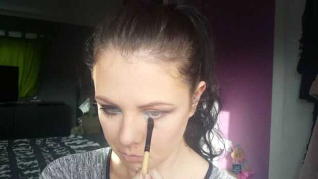 1. en primer lugar lo que me gusta hacer es cebar mis párpados con corrector. Esto ayuda a que la sombra se mezclan y da el color que desee.2. ahora usando la fiesta BH paleta chica después de horas uso el color beige claro y mezcla esto todo mi tapa