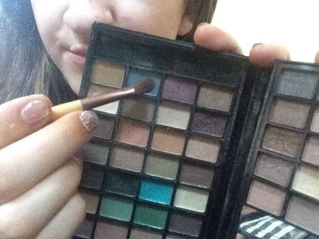 1. en primer lugar lo que me gusta hacer es cebar mis párpados con corrector. Esto ayuda a que la sombra se mezclan y da el color que desee.2. ahora usando la fiesta BH paleta chica después de horas uso el color beige claro y mezcla esto todo mi tapa