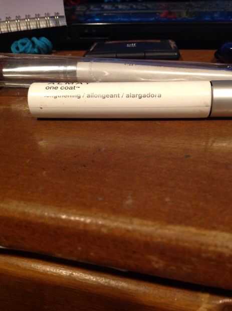 Cepille suavemente la varita del rimel en tus pestañas. Estoy usando mi Mascara de alargamiento de una capa de Almay.
