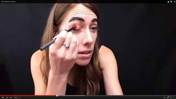 Primero tomé una luz naranja y ponerlo en el interior esquina de mi ojo, entonces tomó un color rojo brillante y ponerlo en el exterior.