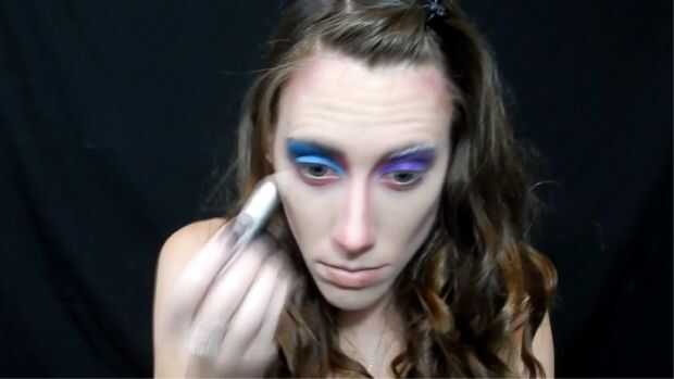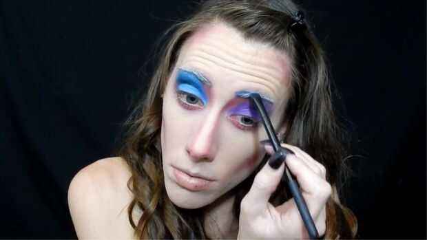 Usé el lápiz de ojos jumbo para establecer mis cejas y luego yo de colores uno azul y uno púrpura frente a los ojos.