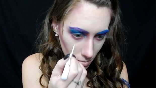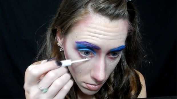 Usando delineador líquido blanco que he añadido las pecas, luego cubrí mis pestañas en el blanco.
