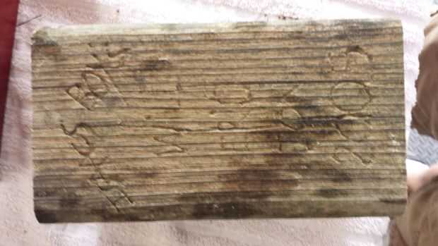 Así que cuando tomaron la fortaleza de los niños el año pasado mis hijos eran un poco tristes. Sobre todo Eric (mi centro) aunque. Como yo estaba apilar para arriba el vieja madera Eric vio una de las vigas de apoyo principal. En esa viga que había tallado en sus nombres y el año construyó. Preguntó si podría guardarlo. Él es sentimental como eso. Así lo hice. Se sentó atrás para meses. La semana pasada tuve un poco de inspiración sobre qué hacer con él. Así que aquí está. La foto es de los tres al mismo tiempo. Dar o tomar un año. Es la única que pude encontrar...