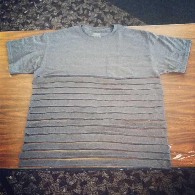 Corte el tronco de la camiseta horizontalmente, haciendo tiras de 11 a 16 (dependiendo de la camiseta de tamaño), cada uno de aproximadamente una pulgada de ancho.