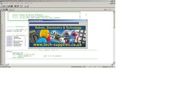 El archivo de programa básico se coloca por debajo y el editor de programación para el picaxe se puede descargar gratuitamente en la Web de Educación de la revolución. Aquí: http://www.rev-ed.co.uk/picaxe/