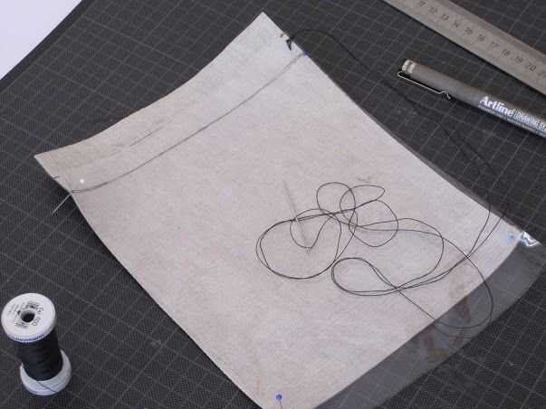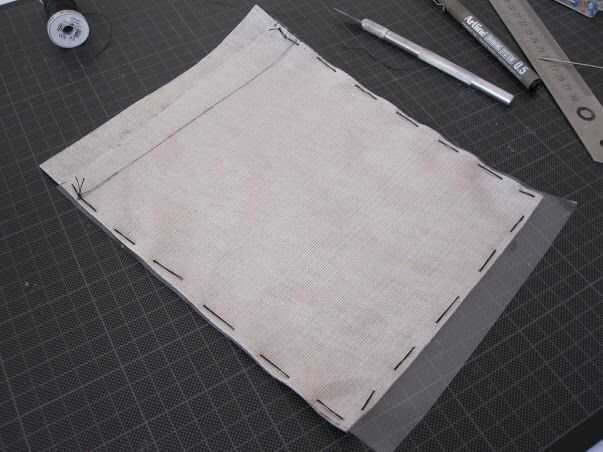 Naai beide rechthoeken lang de randen aan dirección conoció steken grote. LAAT de bovenzijde vrij! DIT es de apertura waar de impresión wordt ingeschoven