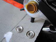 Prik met de ponstang enlaces en rechts van de drukknopen een apertura om het más adelante touw puerta te halen.