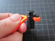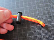 Rijg een kraal op het touw. Rijg daarna beide uiteinden van het touw de tapón de la puerta.