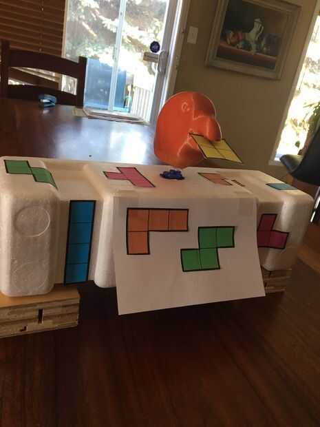 13) pegar el tetris bloquea imágenes a la caja - este paso es muy sencillo. Solamente necesitamos cortar y pegar los bloques de tetris por todas partes en la caja.