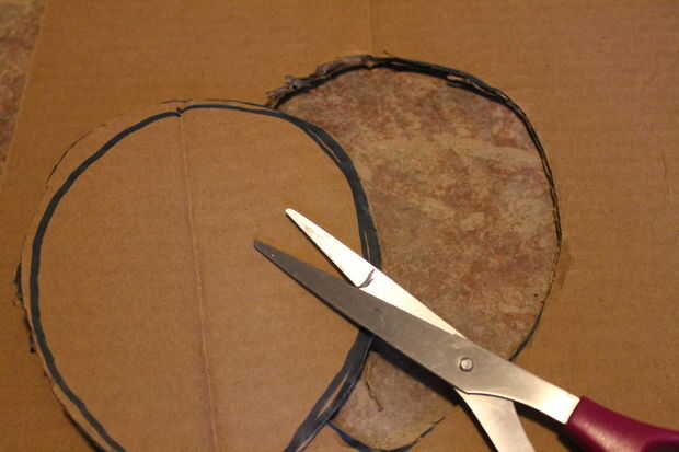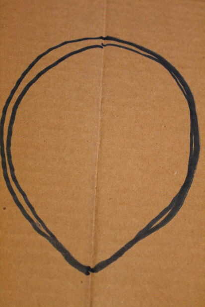 El primer paso es hacer un pliegue en el centro. Luego dibuja un círculo en el centro de la cartulina del mismo tamaño de su cabeza. Luego córtelo hacia fuera