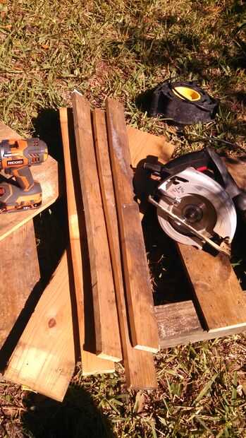 Usando la circulación de la sierra, arrancó dos de las láminas extras. Estas piezas se utilizaría para sostener que el lado de las paredes.