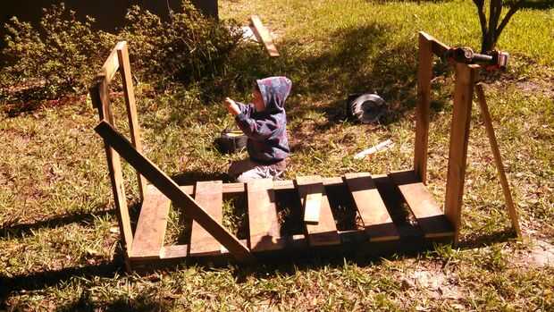 Con la madera restante (2 listones largos rotos y 2 corta listones rotos), diseñé un sistema simple para soportar las paredes. Las dos piezas más se utilizaría en la parte trasera y las piezas más cortas en la parte delantera. Con los últimos tornillos restantes, fueron Unidos los soportes.
