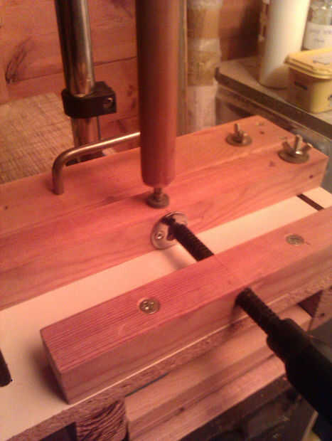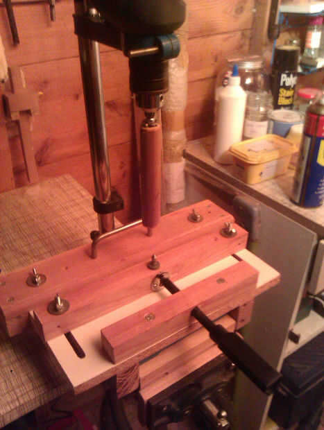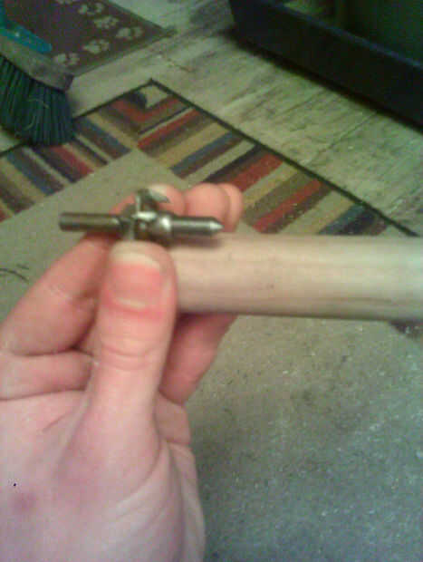 1) primer lugar, se necesitará un agujero para el poco estímulo. Se trata de una brisa, porque debe tener una ranura en ambos extremos de la pieza de trabajo ya. Mantenga la broca de estímulo a su lado; para ver la profundidad tiene que ir (imagen 1) Recuerde que las 'puntas/puntas' de la pata t tuerca va estar sumergido en la madera.