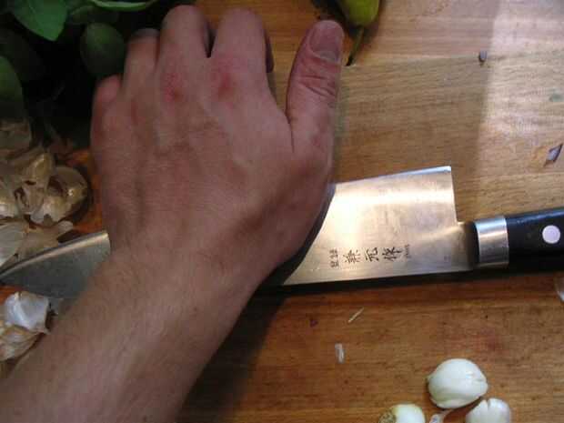 Otra vez, estoy que demuestran cómo pelar ajo y picar el ajo. No necesita alguna pieza de lujo del equipo, y definitivamente no es necesario una prensa de ajo. Como se muestra: