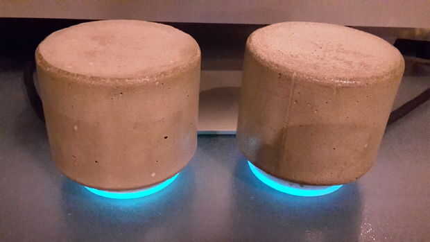 altavoces DIY concreto con un rgb incorporado led que reacciona a la música.