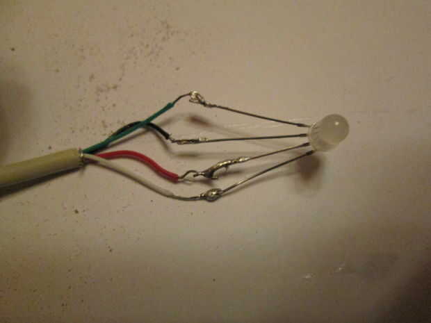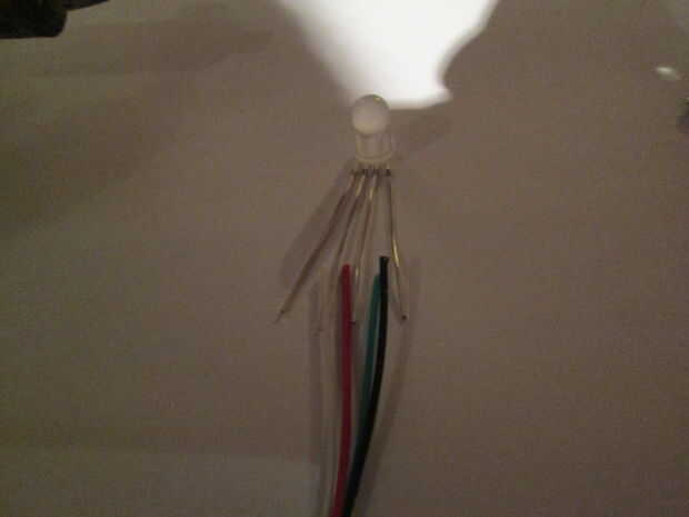 Soldadura un cable de cada pin de los está dirigido. Suelde el cable negro a la más larga (la bruja es el conector de tierra) hacer esto para los 2 leds.