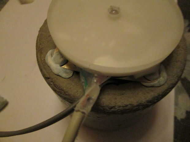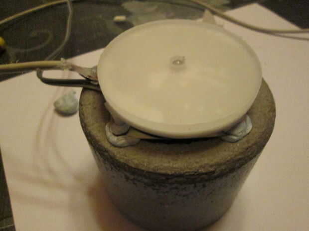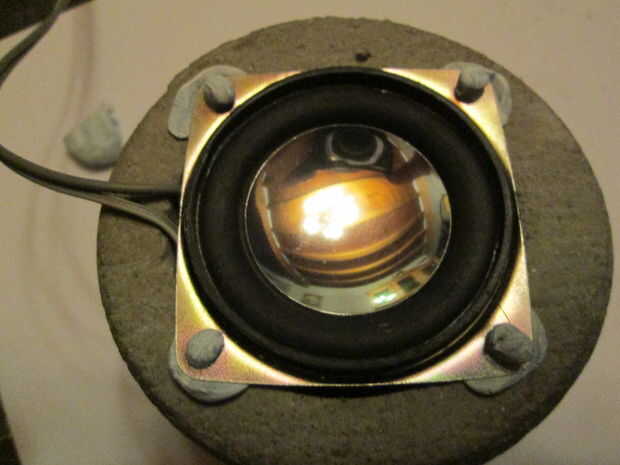 Antes de insertar el altavoz putt algunos foil doméstico (para ayudar a mantener las cosas frescas) dentro de la speaker.this mejorar la calidad de sonido. Putt pegamento amasado en los 4 agujeros de lo altavoces en poner el altavoz en el orificio de montaje. Presione firmemente en su lugar hasta que el pegamento salga por los agujeros. Luego coloque el disco "montaje" en del altavoz. Con las 4 piezas de plástico alinean con el holes.reinforce los 4 puntos con poco más de pegamento.