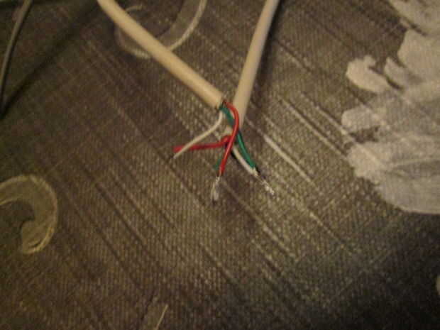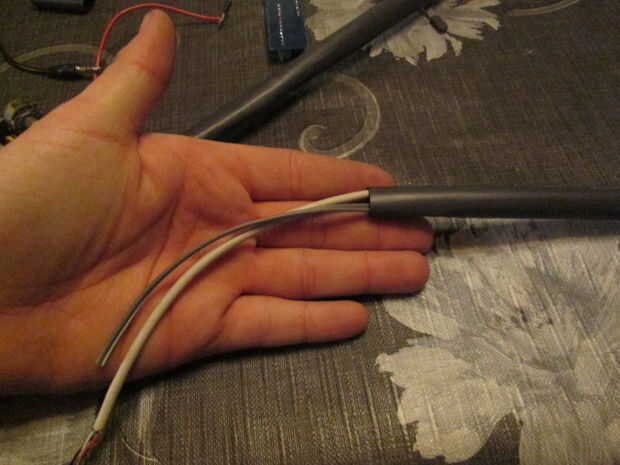 En primer lugar tomar alguna reducción de tubo y ponerlo sobre los cables de los altavoces. Debe tener un cable para audio y uno para el rgb led.