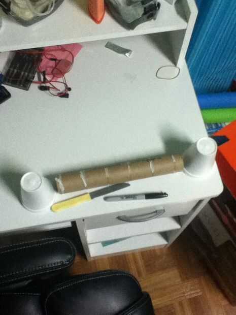 Materiales necesarios rollo de toalla de papel o papel higiénico (Asegúrese de que es sólo la pieza, no con cualquier cosa en él) 2 tazas de cualquier tipo utiliza espuma pero solo que con tus padres que te permite cortar en cada una de las tijeras un cuchillo (si es necesario, pero ser cuidadoso). Una pluma o una marker(optional) y una electrónica que tiene construidos en altavoces.