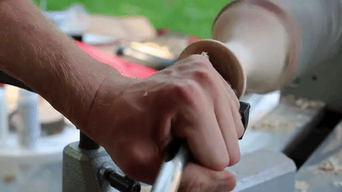 A continuación quiere limpiar el interior borde del Jarrón y hueco hacia fuera de la vasija. Usted puede hacer esto de muchas maneras diferentes, incluyendo el montaje de una broca a la acción de la cola, o como lo hicimos utilizando un taladro para excavar el agujero mientras la pieza gira. Movió nuestro pedacito de taladro para hacer la abertura más ancha. Cuanto más tiempo una broca que tiene, más puede ir dentro de la pieza. Ser consciente en cuanto al grosor de las paredes cuando estás cerca del punto más estrecho de la vasija.