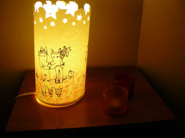 PONEMOS NUESTRO MARAVILLOSO DIBUJO SOBRE NUESTRA BASE Y YA TENEMOS LA LAMPARA!!!