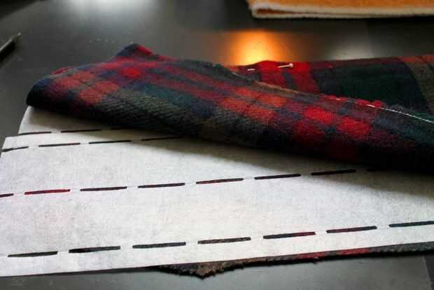 Combinar las piezas de tela de lana con los demás. Lo mismo para la guarnición.