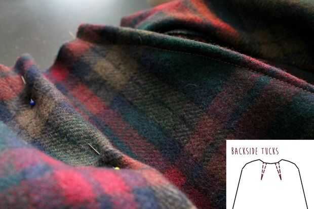 Figura 2 muestra mi adición de 2 alforzas en la parte trasera. De esta manera el tejido es más bien alrededor del cuello.