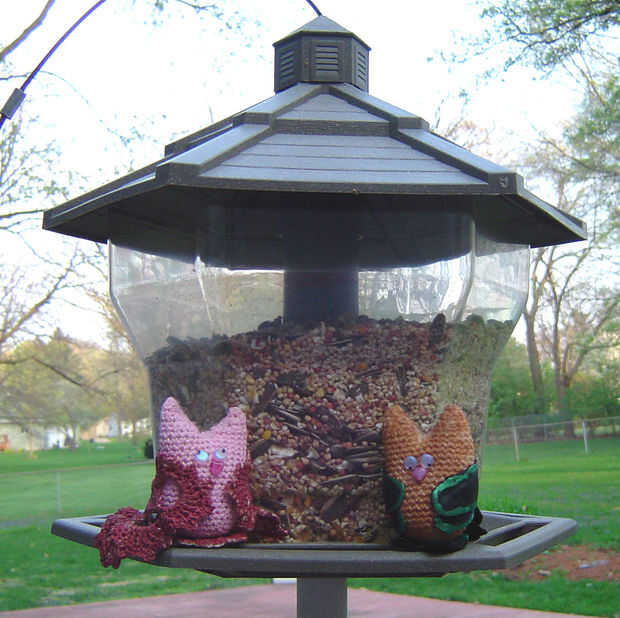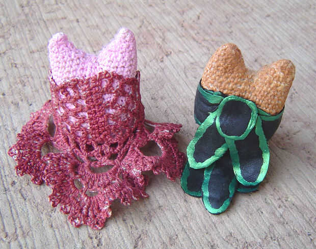 estos son los búhos, cuero y encaje.  No puedo recordar un tiempo en mi vida que no me pueda croché algo.  Me encanta la variedad de efectos que pueden lograrse con ganchillo.  Estos búhos pequeños fueron creados con hilo de crochet de tamaño 10 y un tamaño de gancho de ganchillo acero 2 / 2.25 mm.  Había creado mi propio patrón de encaje de las alas de encaje y un viejo par de guantes de cuero para alas de cuero.  Pinté los buhos eran rellenas y también pintó las alas.  Los ojos y pico es granos, cosidos en hilo nymo.  Entonces todo se pega.  He incluido las instrucciones al crochet estos búhos pequeños.