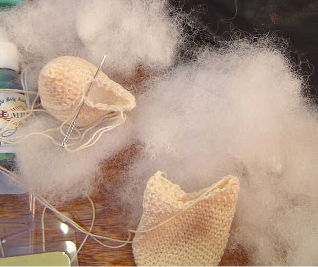 Materia cuerpo y coser las orejas cerradas con puntadas pequeñas, discretas.