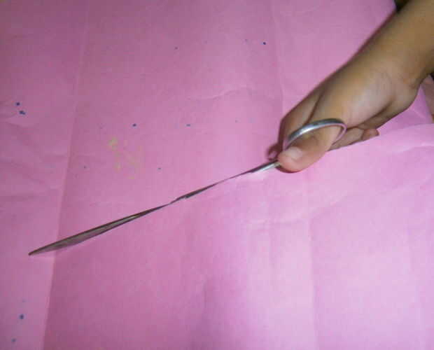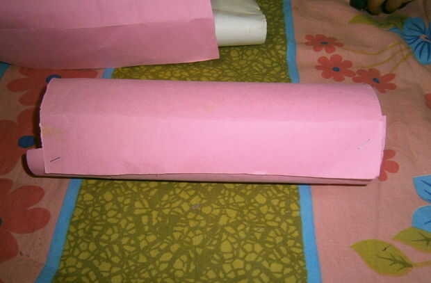 Primero corte un rectángulo de uno de la tabla. Fue tan bonito ver a mi sobrina use las tijeras (bajo mi dirección) con los dedos de su bebé. Engrape los lados para obtener una forma de cilindro o usted puede pegar también.