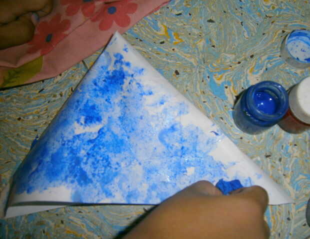 Sumergir el tejido en el color que desee y luego presione la pintura sobre la hoja de gráfico. Para obtener un efecto de tejido.