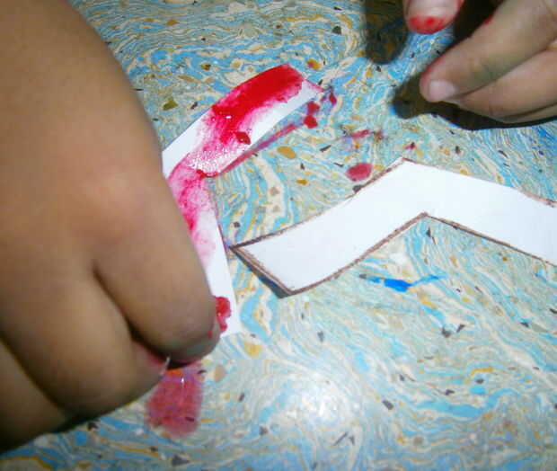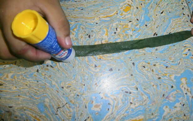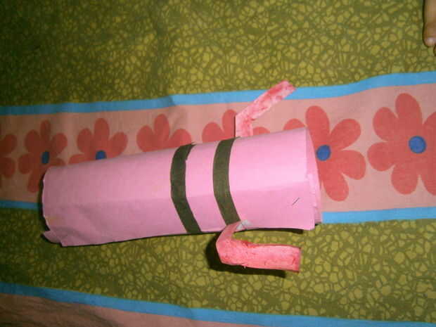Dibujar la forma de la pierna que desee para el cohete. Recorte. Luego pintar con tejido nuevo con el color que desee. Fijarlo al cuerpo con pegamento. Añadir las tiras de papel que desee en el cuerpo del cohete. He utilizado las tiras de color verde alrededor del cohete para un contraste. Estás casi listo para volar.